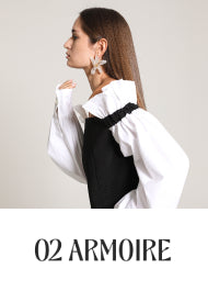 アドベスならではの印象を生かしてデザインしたクロップデニムジャケットで、既成のクロップより少し短いキビで果敢に表現しました。前後の4つの伸びたストラップがポイントで複数のスタイリング表現が可能です。また、同じデニム生地で作られたスカートとセットアップで着てすっきりしながらもユニークなスタイルを作ってくれます。